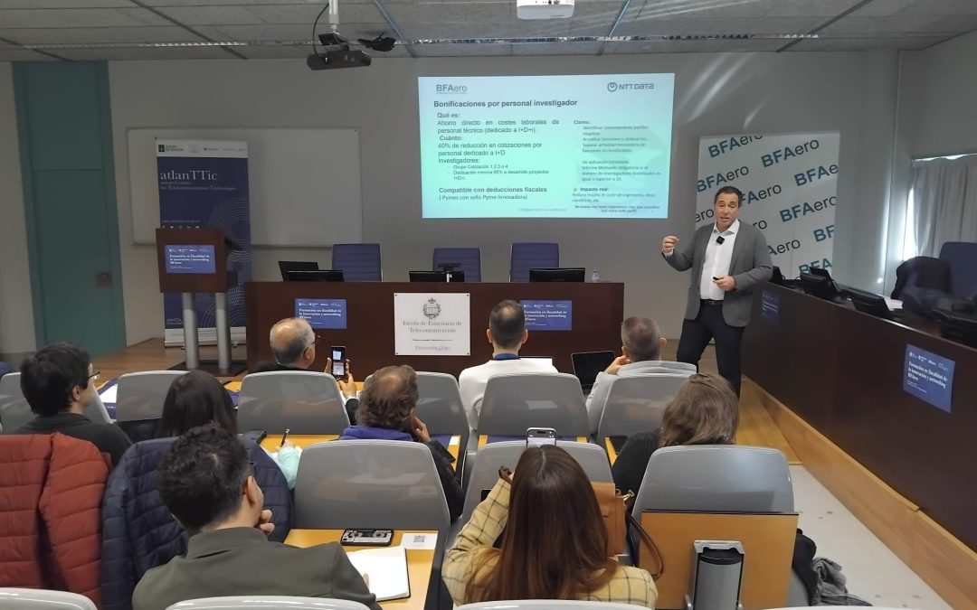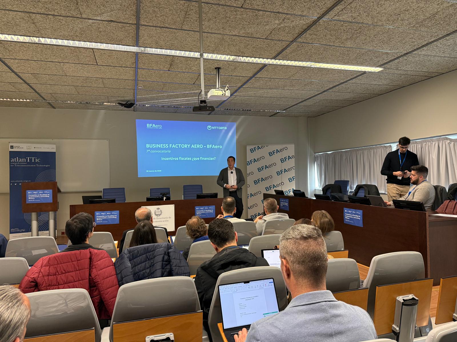 A sesión, que tivo lugar no centro de investigación atlanTTic, permitiu aos participantes comprender os principais incentivos fiscais á innovación e a súa aplicación práctica en startups tecnolóxicas.